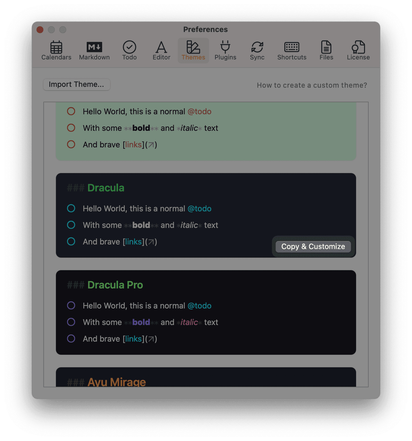 NotePlan gives you much more control over the style of your notes. For starters, there are over a dozen themes, each with its own look and feel for your notes. What’s more, NotePlan allows you to fully customize your own theme. From colors, over typography, to size, and even custom Markdown formatting. That way, you control the entire look and feel of your note-taking setup. Yet the general interface stays inside the familiar box of the Apple experience.
