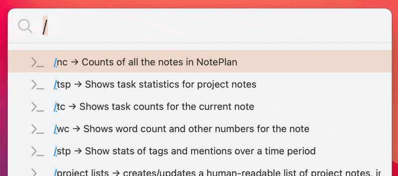 Plugins help you to write, organize, and create notes and tasks faster and easier. What’s more, you can even create your own plugins with JavaScript and submit them to NotePlan.