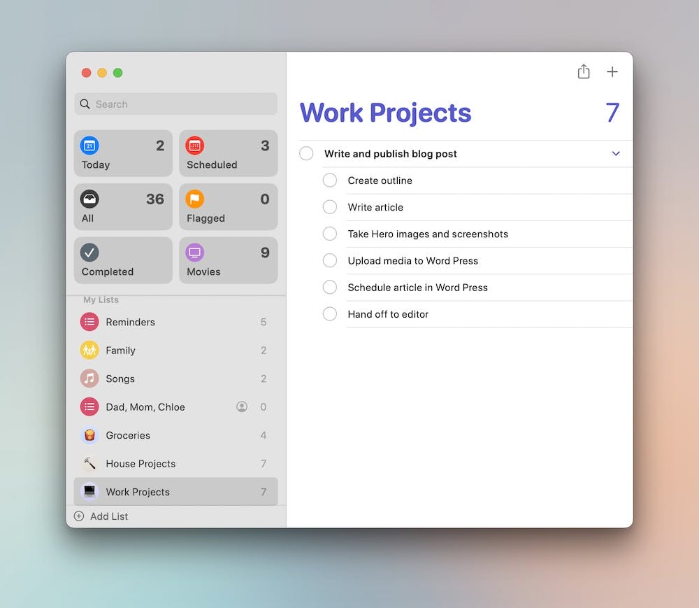 TickTick also works if you need to collaborate with others. You can share lists and individual tasks with your team, and you can even use it to manage a couple of household projects.