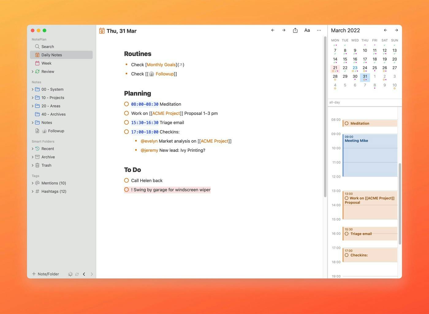 All you really need to start time blocking is a calendar. Even a paper journal could do. But using an app has several advantages. Especially when you use NotePlan.