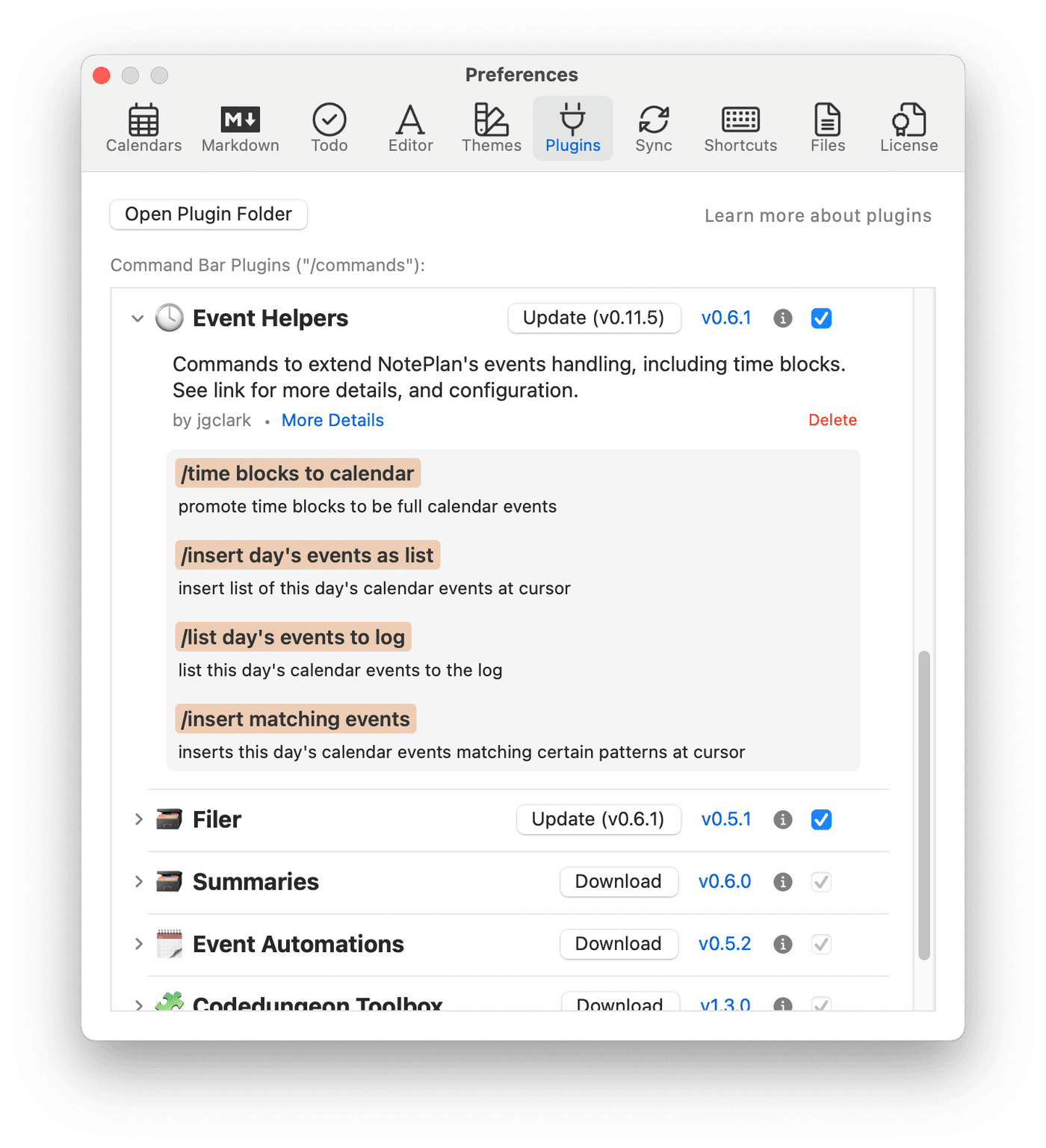 Suppose you prefer to add your calendar events inside your daily note. In that case, you can use the Event Helpers plugin. What’s more, you can even turn your NotePlan time blocks into full calendar events. So you can work with time blocks in NotePlan in any direction: from your calendar into NotePlan and the other way around.