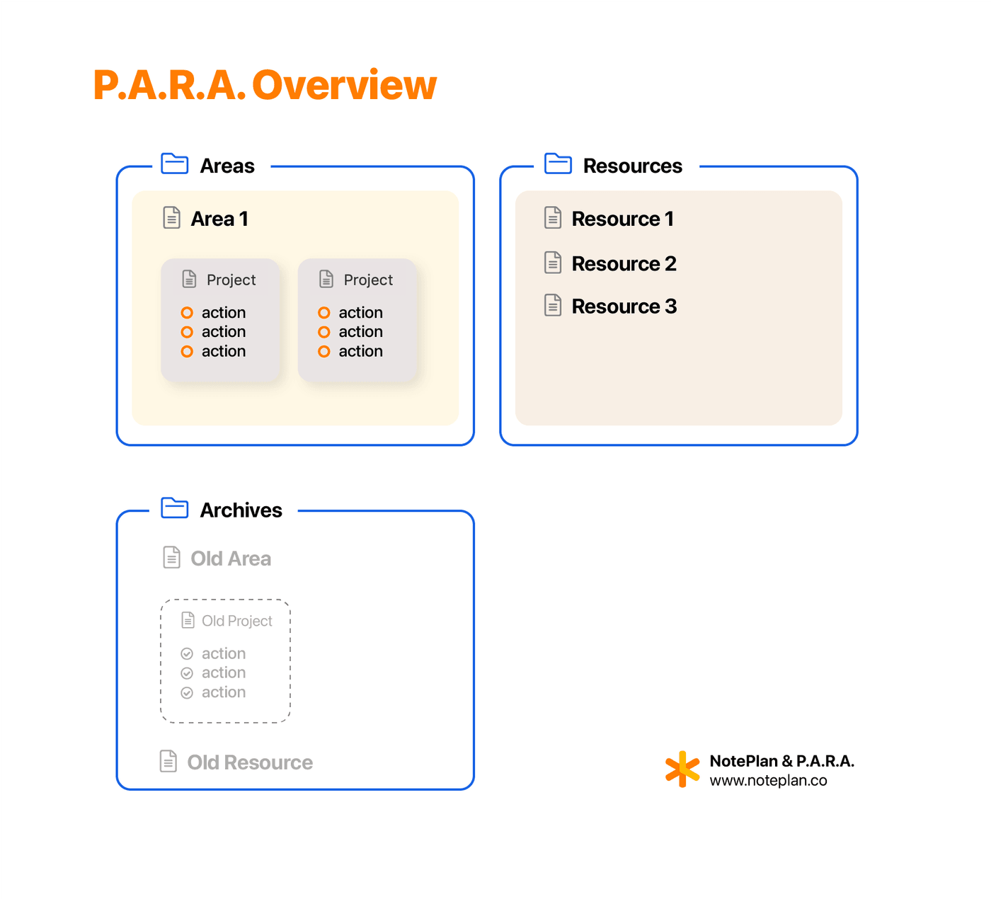 P.A.R.A is an organizational or structural model and using it inside NotePlan’s framework brings several advantages.