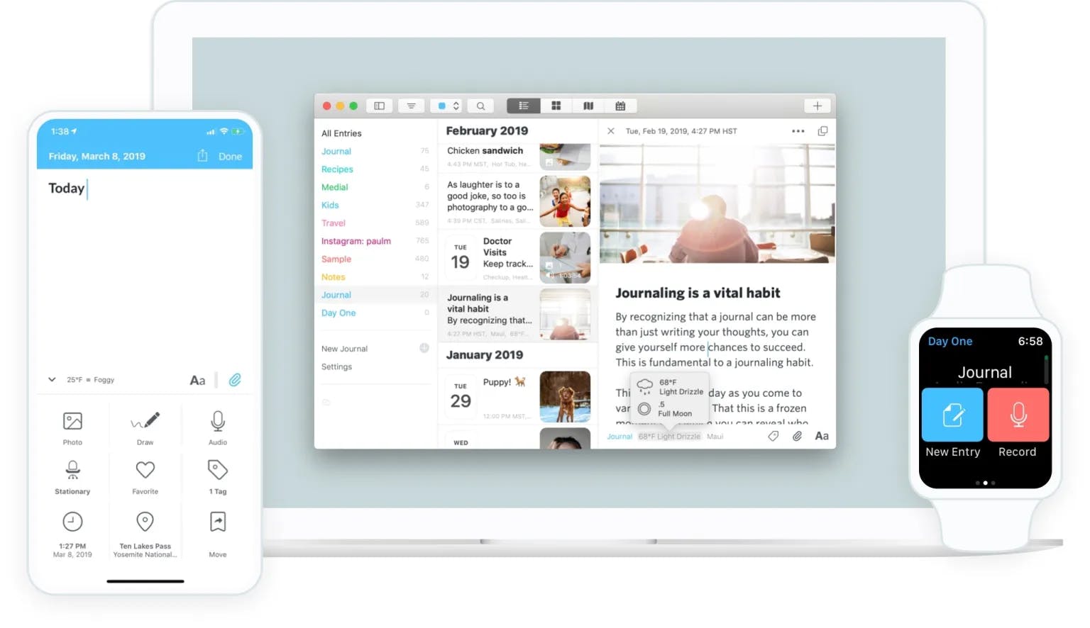 The app also includes a feature called "On This Day," which provides users with an opportunity to revisit past entries, enhancing the reflective aspect of journaling. Moreover, the Day One app supports multiple journals and offers numerous options for organizing and categorizing entries.