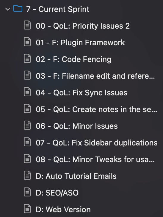 My main activity besides coding is to talk to users (of NotePlan) — mostly through email, Discord or Reddit. Users share bug reports, feature requests, questions and more daily. I’m trying my best to keep up with replies while balancing other tasks. I’ve tried to capture every bug report and feature request first inside an inbox folder in NotePlan if they contained new information. Then I took some time out of my schedule to process all inbox notes. This meant filing them into my ZK folders or deleting them (rarely) if they were irrelevant or already captured.