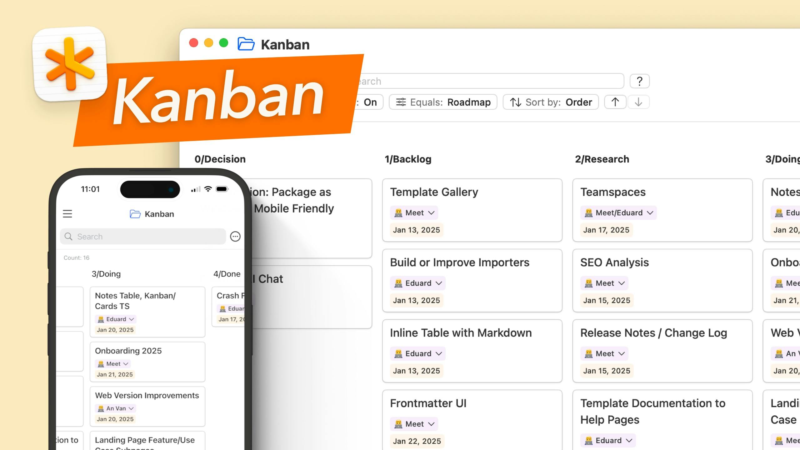 The Notes Table is coming to iPhone and iPad and we are introducing a new view: "Cards", which lets you build Kanban boards from your notes.