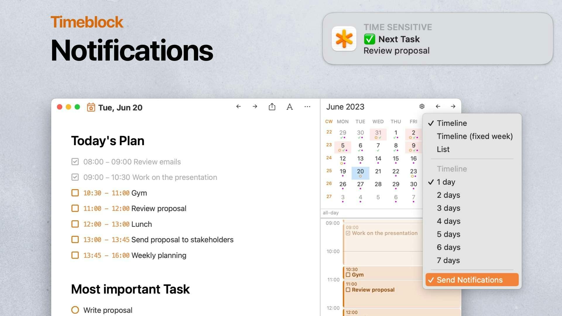 NotePlan 3.9.2 brings you two features to make your workflow even more productive: sending meeting notes and notifications when time blocks start.
