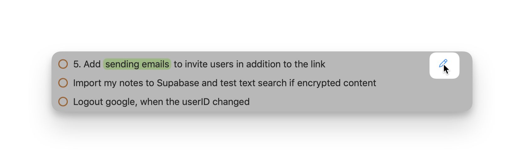 Now, filtered views are even more powerful: you can edit items live in the saved filter view. In older NotePlan versions, items in the filters were view-only. Starting from NotePlan 3.9.11 you can easily edit any item (tasks and even subtasks) inside a filter view on macOS (adding to iOS soon). Simply hover over an item and select the blue pencil icon on the right. It’s that easy.