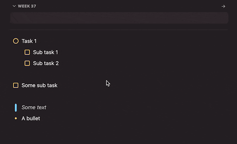 - Indent plain text. You can now indent plain text blocks, too. Just like tasks and bullets (if you want to insert a tab, use Option + Tab).