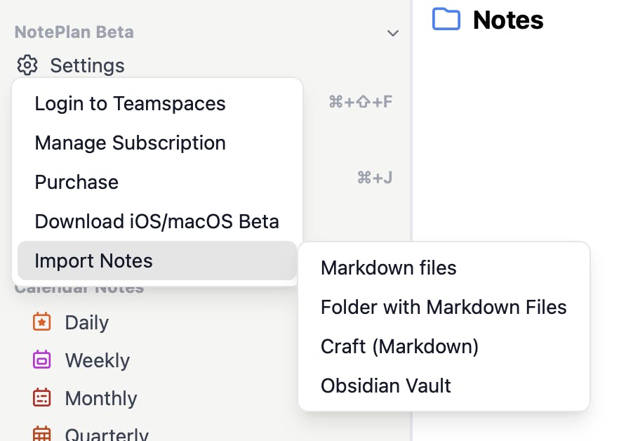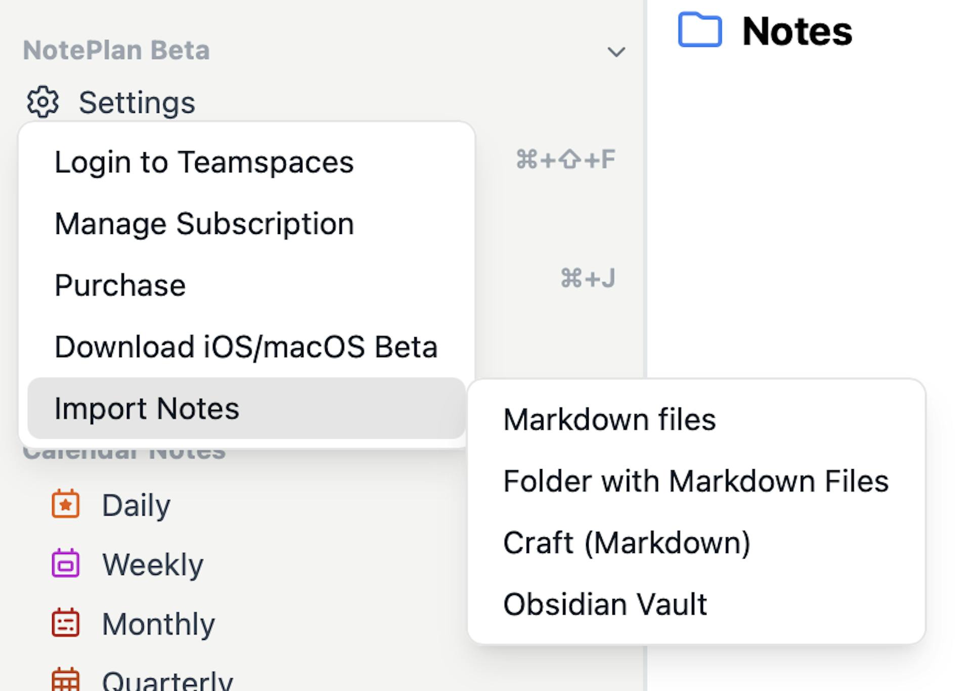 - Craft (Markdown) - Notes exported from Craft (NotePlan will perform the required conversions and manage attachments)