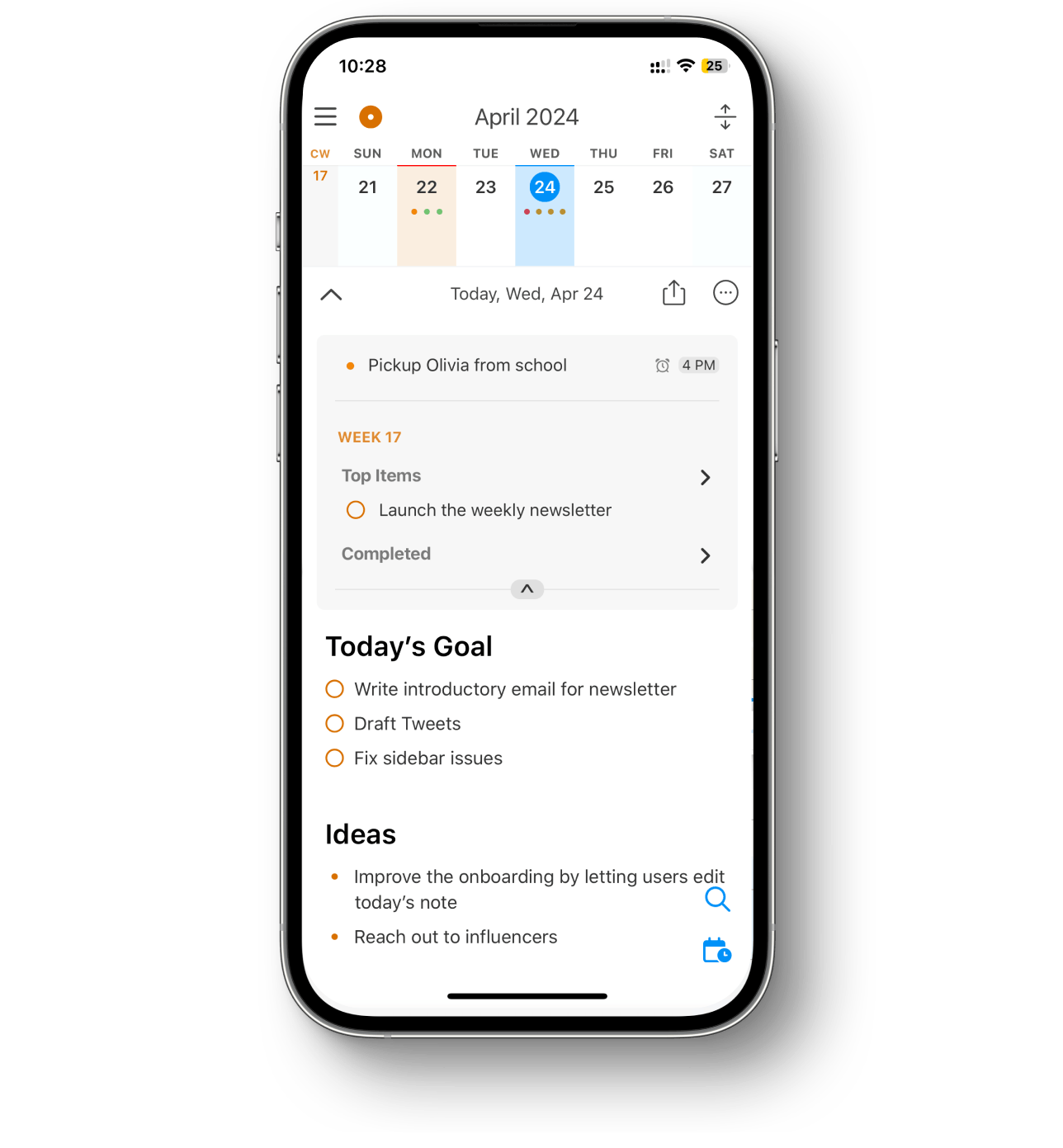 Your tasks seamlessly appear in their corresponding daily notes, keeping your plans organized without any extra effort.