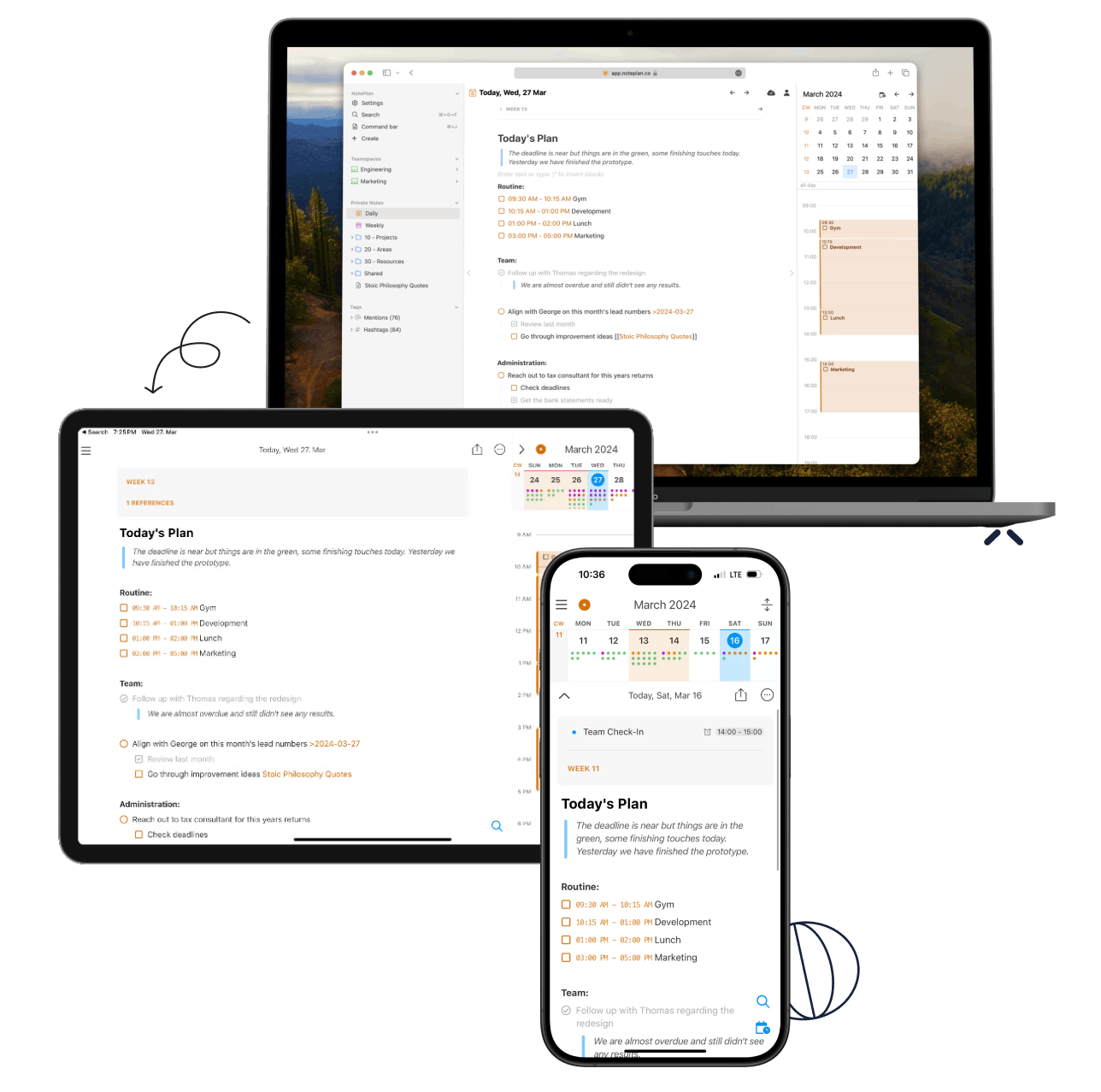 Most tools require constant tweaking, leaving less time for actual work. With NotePlan, focus on getting things done—not configuring tools.