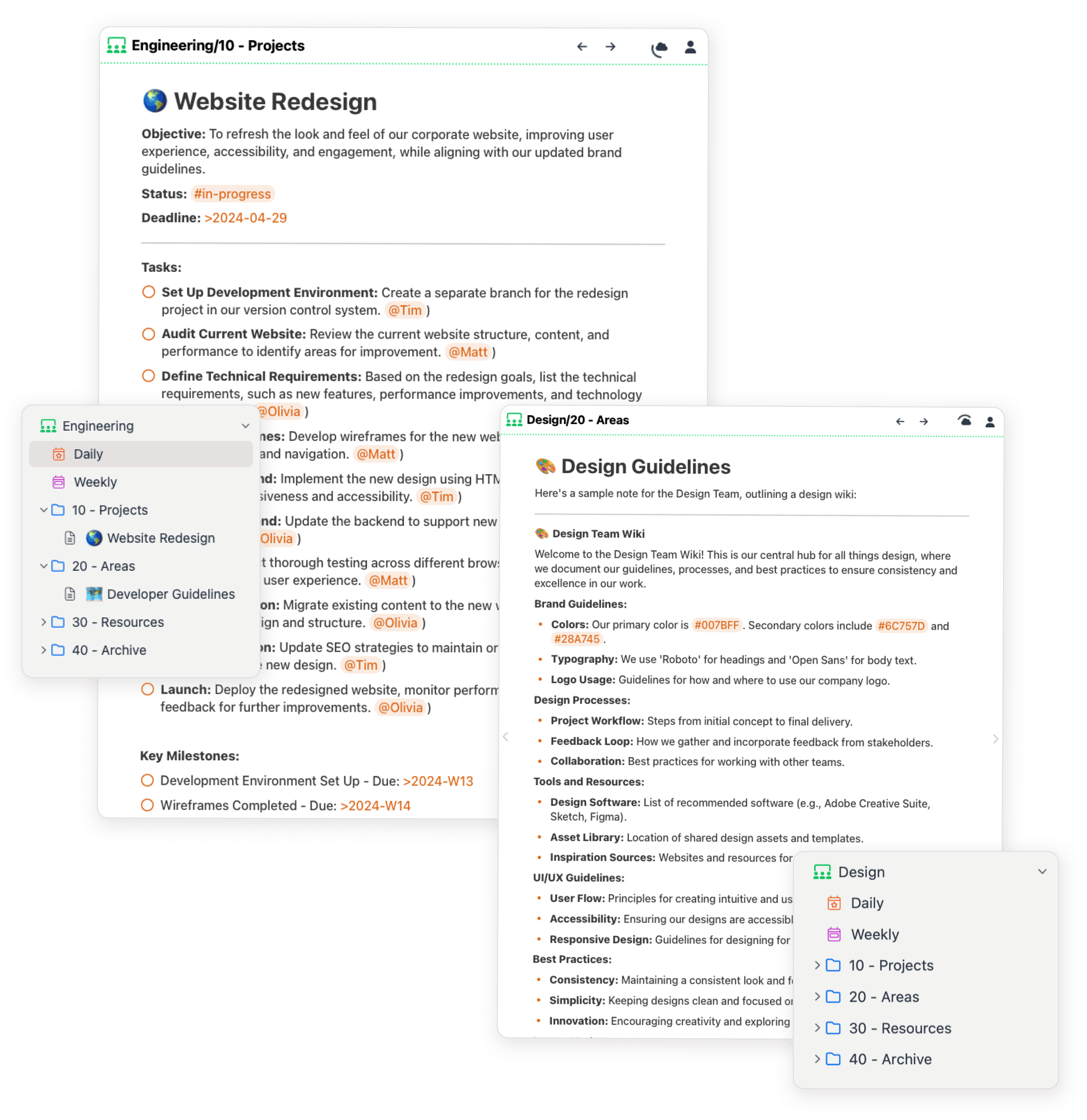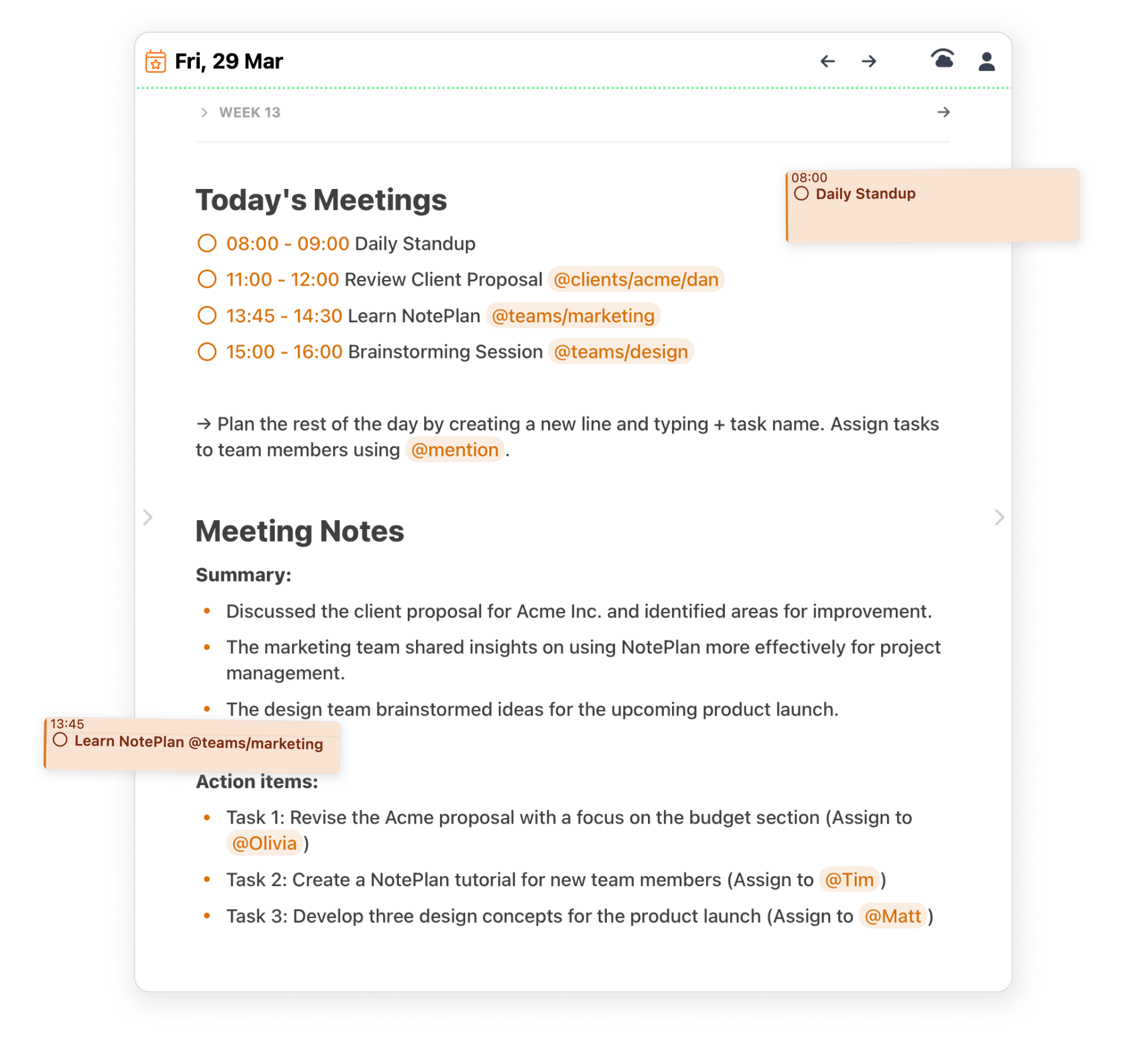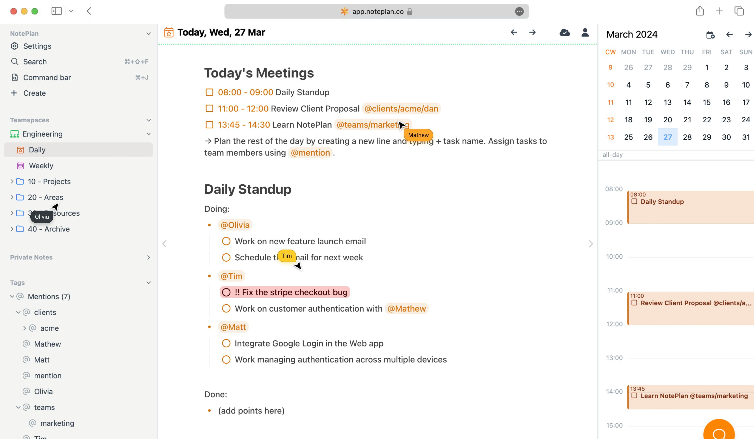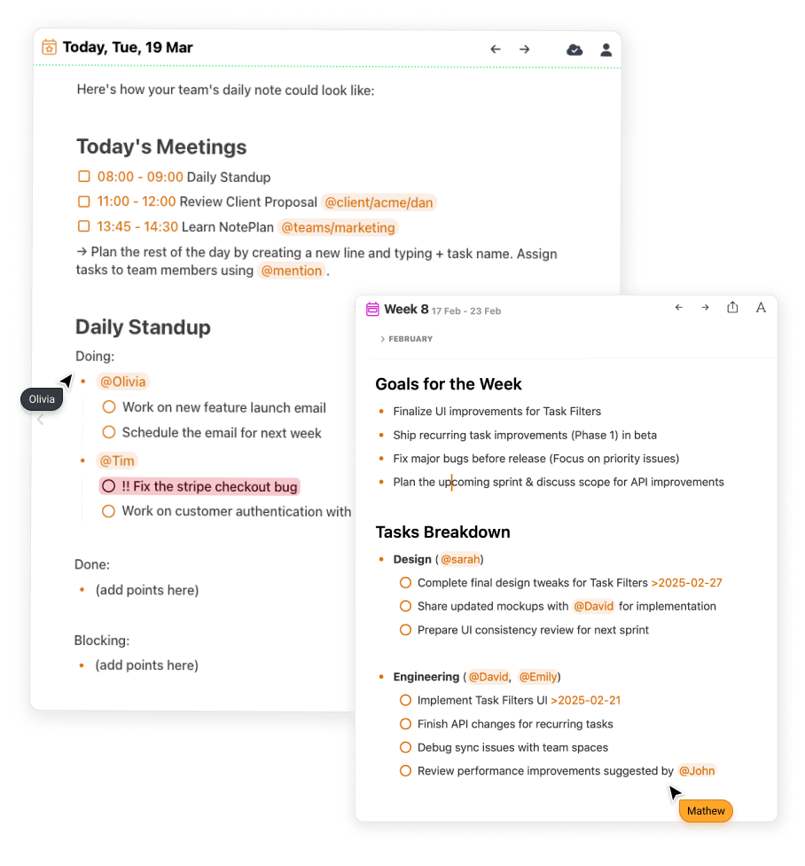 - Plan tasks and updates in a shared daily note—perfect for standups and team check-ins.